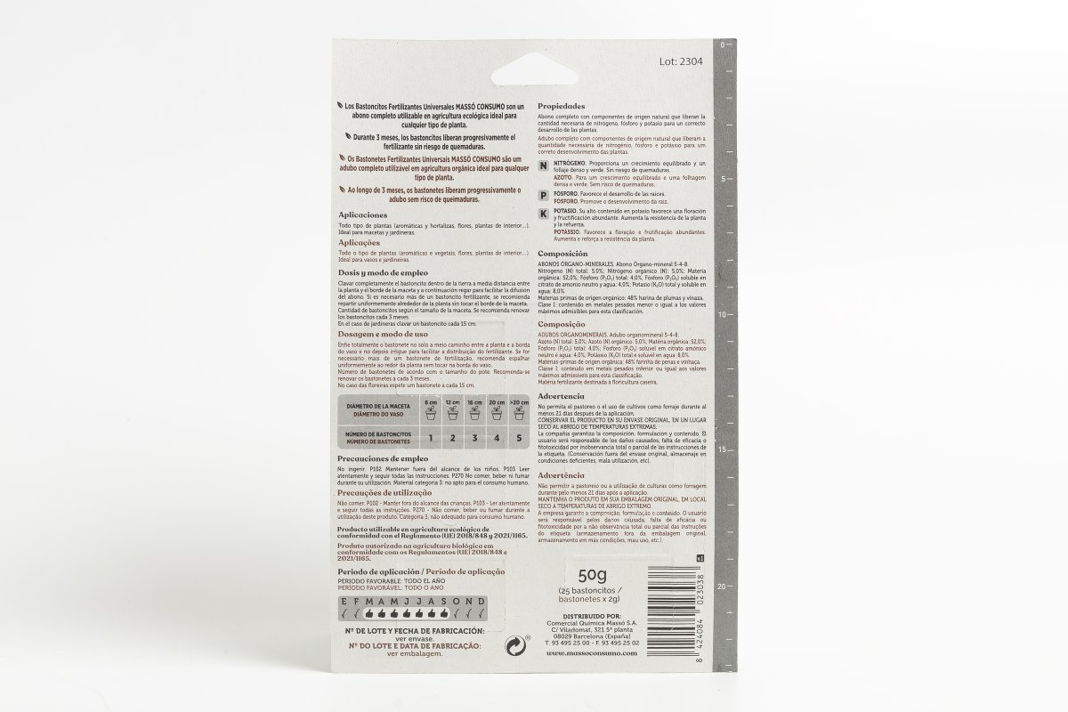 - Durante 3 meses, los bastoncitos liberan progresivamente el fertilizante sin riesgo de quemaduras