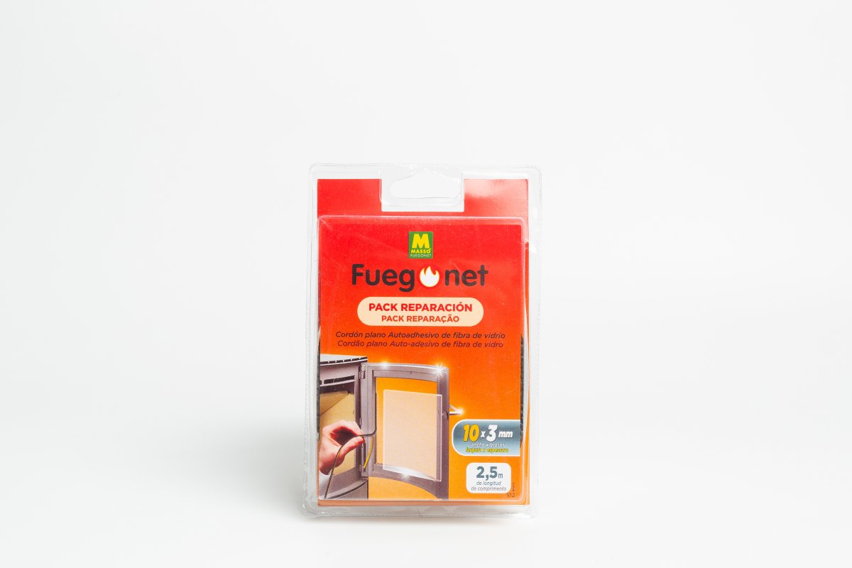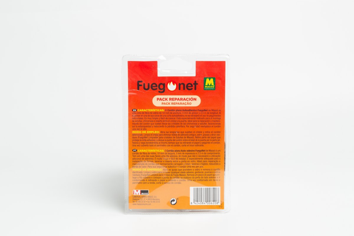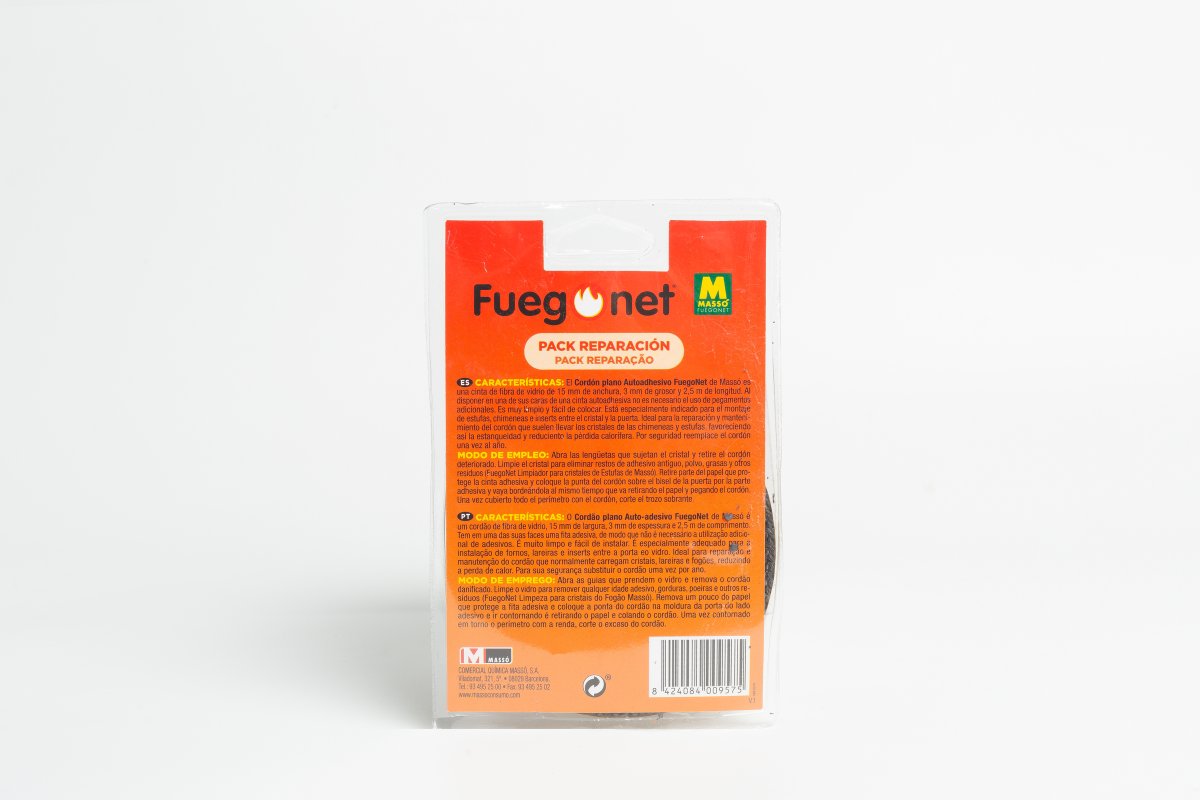 - El cordón plano autoadhesivo Fuegonet de Massó es una cinta de fibra de vidrio de 10mm de anchura, 3mm de grosor y 2,5m de longitud.