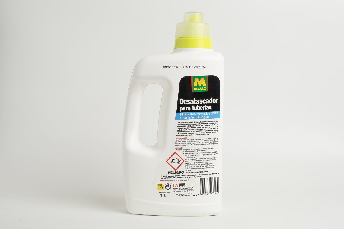 El Desatascador Massóelimina de forma eficaz, fácil y rápida los atascos más resistentes (celulosa, grasa, comida, cabellos, etc...) y los malos olores de cañerías y desagües (cocinas, baños, WC, duchas, etc...).
