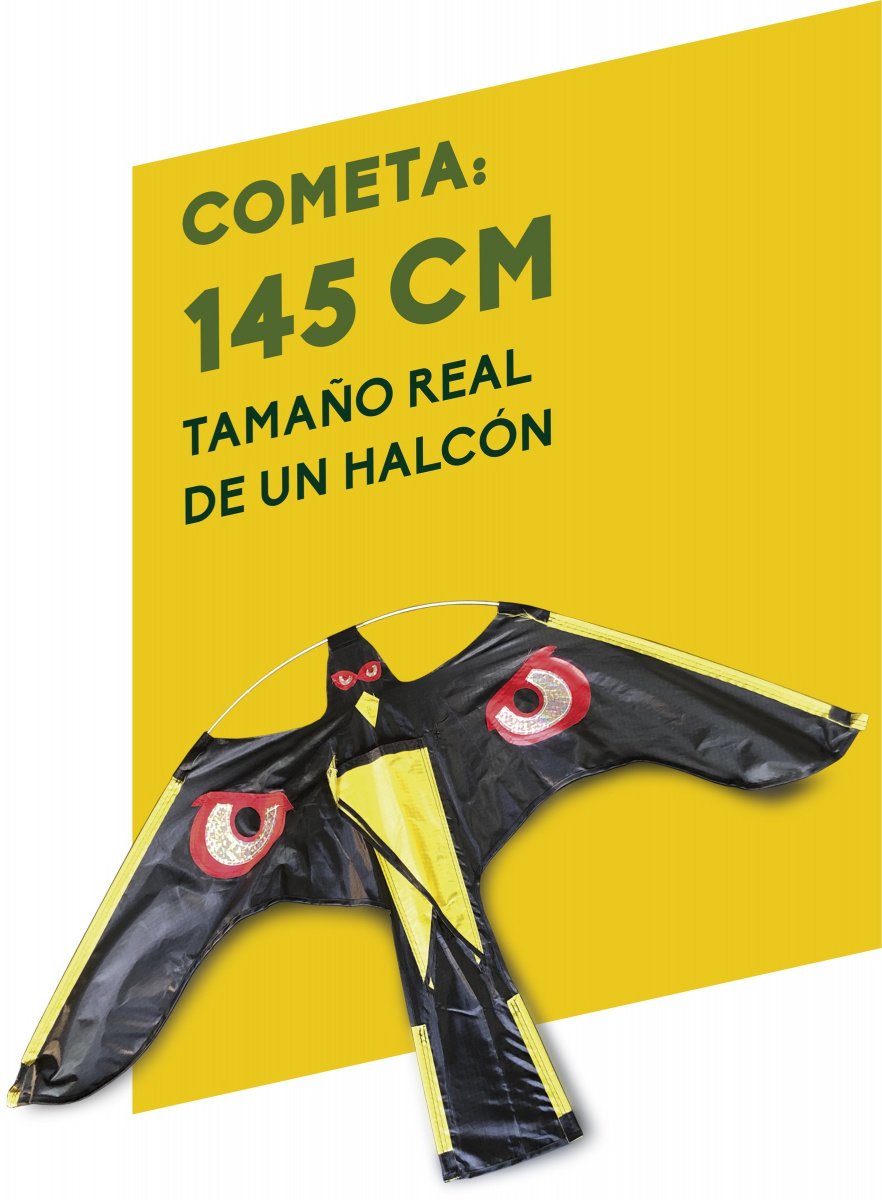 Resistente a las condiciones climáticas, el halcón cometa proporciona protección constante contra aves, ayudando a prevenir daños en cultivos y estructuras sin alterar el equilibrio natural del ecosistema. Es una opción respetuosa con el medioambiente para el control de plagas de aves.