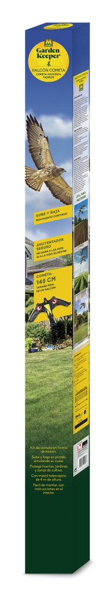 El espantapájaros Halcón cometa es una solución efectiva y respetuosa para mantener alejadas a las aves de cultivos, parcelas, campos recién sembrados y edificaciones sin dañarlas ni afectar su entorno. Su diseño, que simula un depredador en vuelo, genera un efecto visual disuasorio que impide que las aves se acerquen y se posen en la zona protegida.