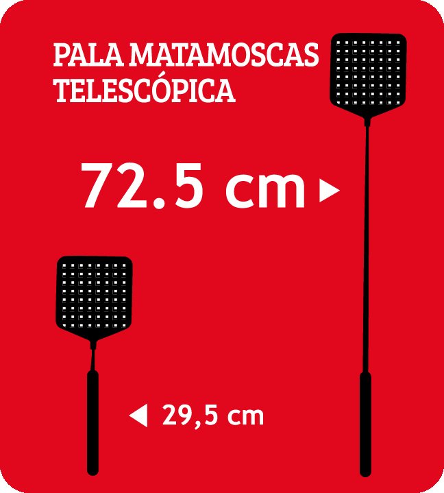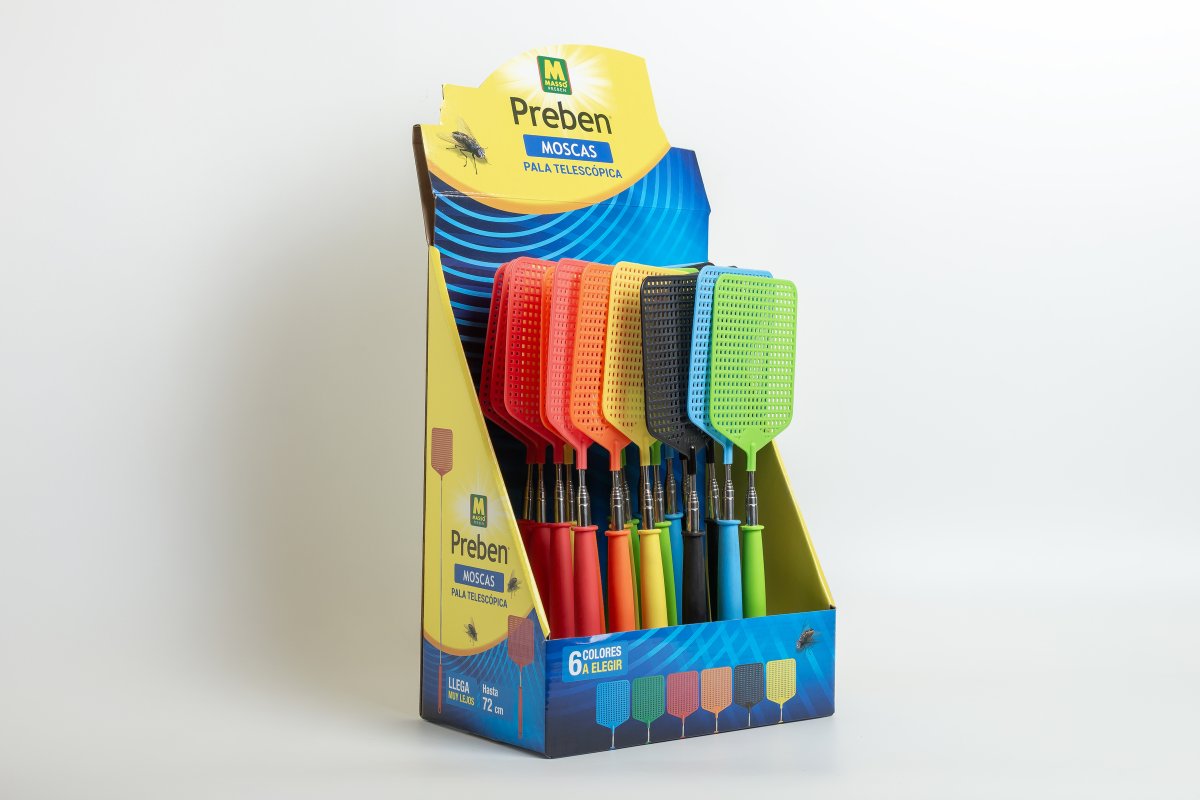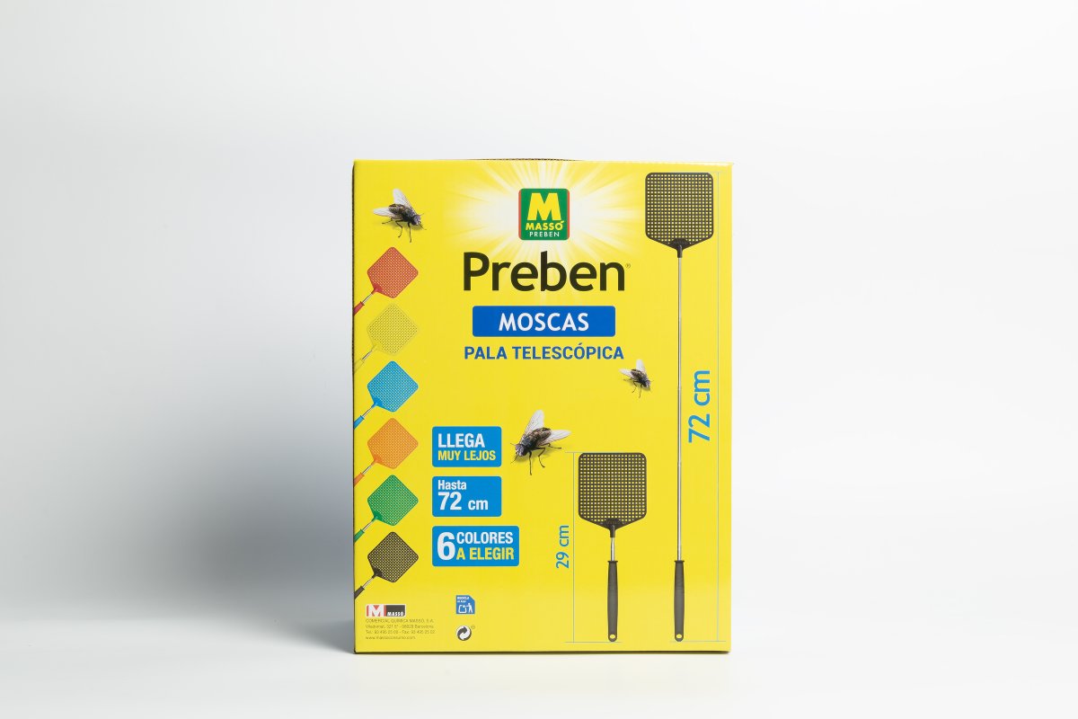 La pala mata moscas extensible de Preben Massó Consumo es la solución ideal para eliminar moscas en interiores de manera efectiva y cómoda. Diseñada para alcanzar hasta 72 cm cuando está desplegada, permite llegar a zonas difíciles sin esfuerzo, facilitando un control eficiente de las plagas.