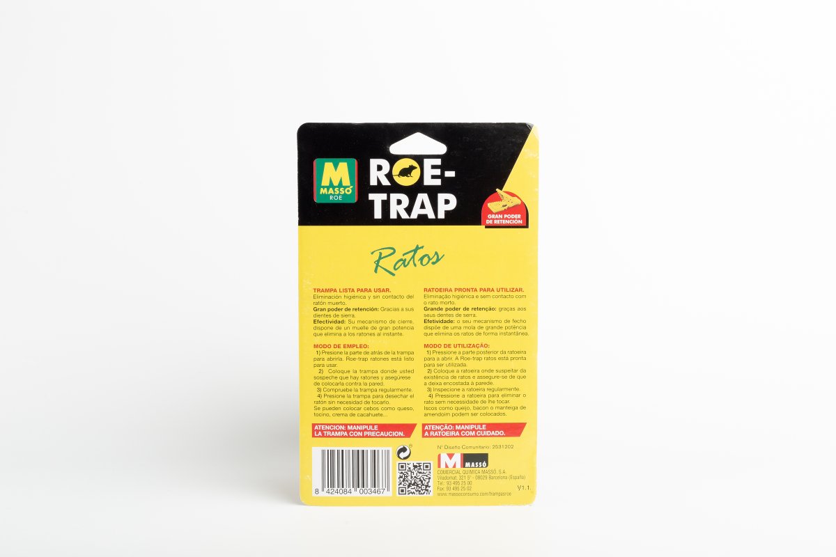Modo de empleo: 1.- Presione la parte de atrás de la trampa para abrirla. Roe-Trap ratones está lista para usar.