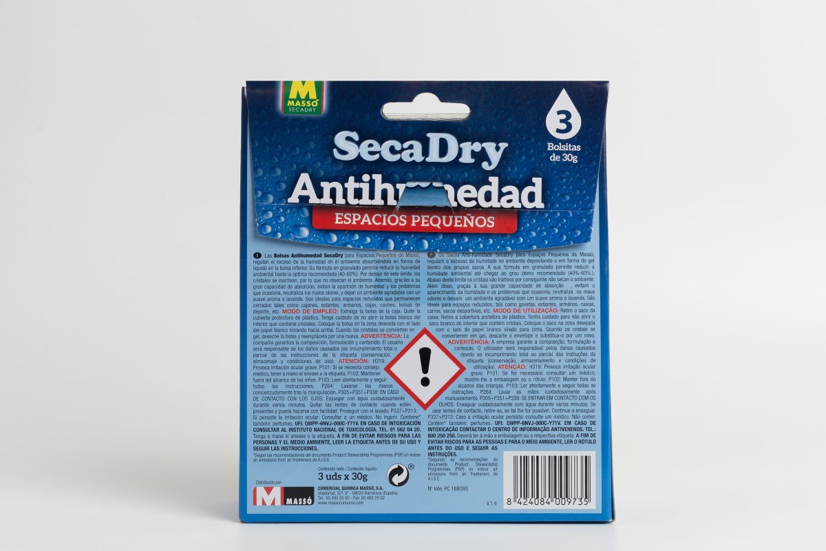 Las bolsitas antihumedad Secadry son la solución perfecta para controlar la humedad en espacios pequeños como cajones, estantes, armarios, coches y bolsas de deporte. Su innovador sistema de absorción transforma la humedad en gel, evitando la acumulación de agua y protegiendo los objetos almacenados de la humedad y los malos olores.